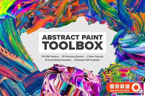 [图片素材]100+抽象艺术液态流体油漆绘画水彩颜料涂鸦笔触纹理背景图片素材 Abstract Paint Toolbox