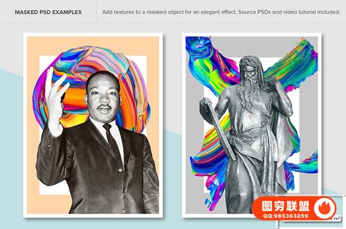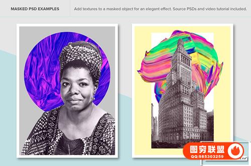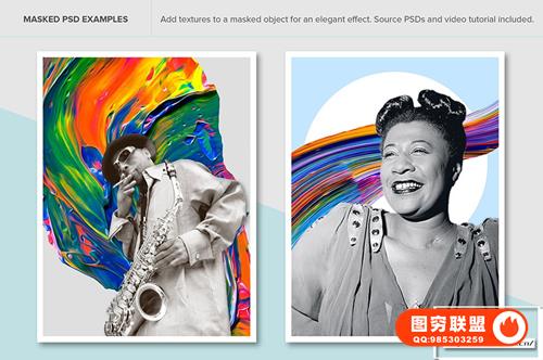 6 个示例 PSD,展示了如何使用带有蒙版照片的纹理来创建充满活力的现代设计