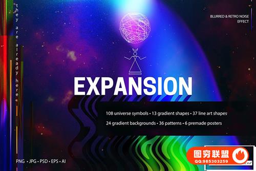 [矢量素材]未来迷幻抽象机能赛博朋克艺术宇宙元素炫彩几何渐变图形创意设计套件 Abstract Galaxy Graphic Objects