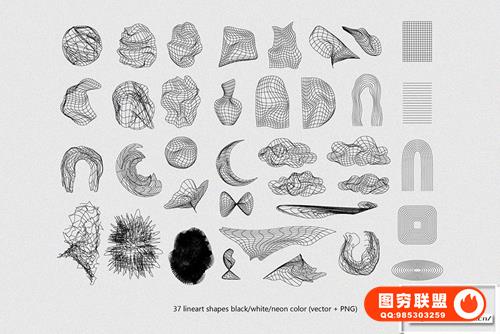 抽象线条艺术形状(37 个白色、37 个黑色、37 个彩色和所有 111 个矢量艺术)- AI,EPS 10,PNG 2500×2500 像素