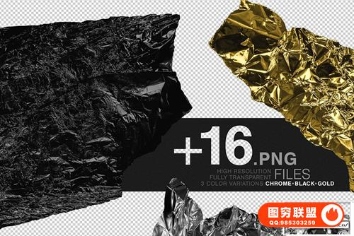 [图片素材]16款潮流黑金金属铝箔镀铬褶皱纹理背景图片素材 Alumen -Meta