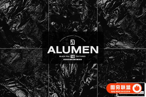 [图片素材]16款潮流黑金金属铝箔镀铬褶皱纹理背景图片素材 Alumen – Metal Foil Textures