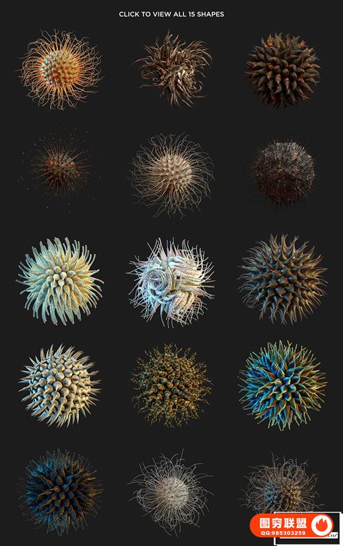 图穷联 » [PNG素材]15张微生物形状抽象艺术纹理创意设计合成素材 Organic Abst