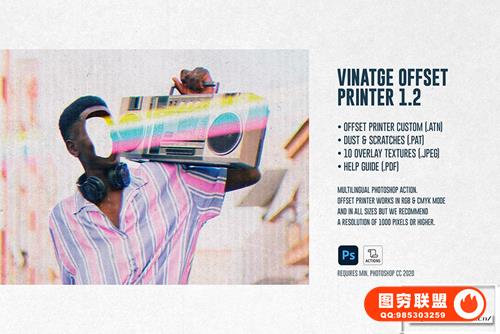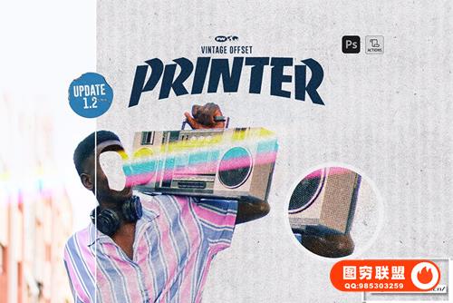 [PS动作]复古半色调胶印机印刷色彩颗粒纹理特效PS动作 Flyerwrk – Offset Printer