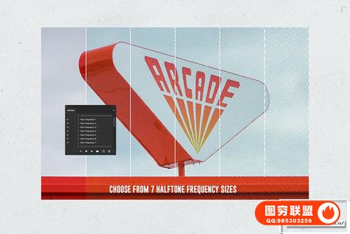 图穷联 » [PS动作]复古半色调胶印机印刷色彩颗粒纹理特效PS动作 Flyerwrk -Off