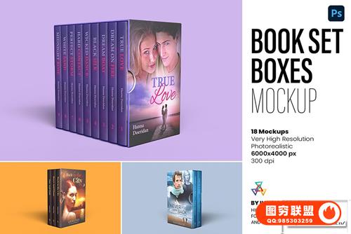 图穷联 » [PS样机]18视图精装书籍收藏套装包装盒封面展示PS模型样机 Book Set B