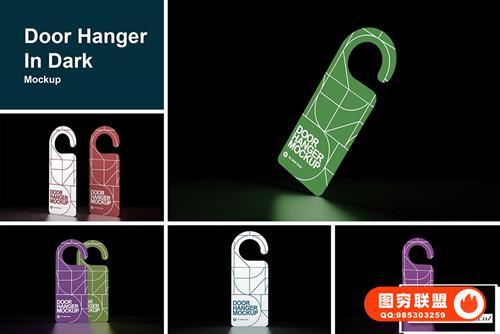 [PS样机]酒店会议室房门挂牌吊牌门锁门把手挂牌展示模型PS样机 Door Hanger In Dark Mockup