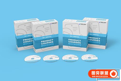 [PS样机]10视图数字产品软件教程光盘CD包装盒展示3D模型PS样机 Product Courses Mockups – 10 views