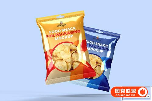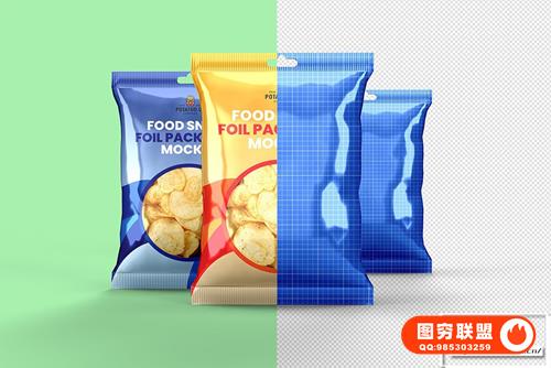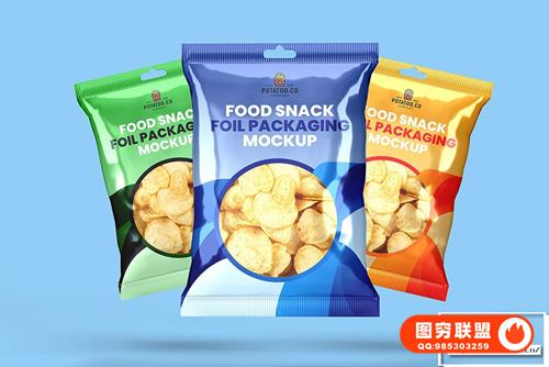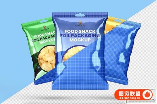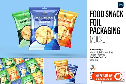图穷联 » [PS样机]8视图膨化食品零食铝箔密封包装袋展示模型PS样机 Food Snack