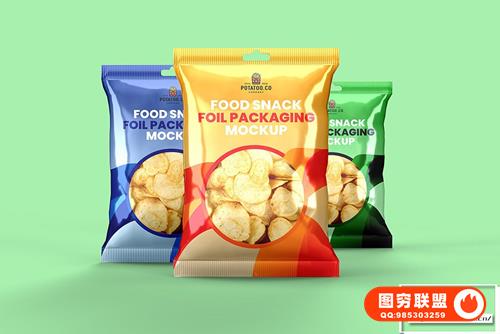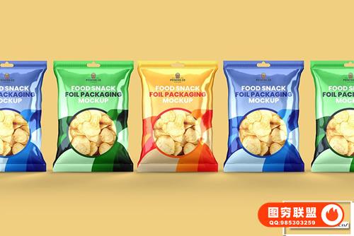 使用这些高质量的模型节省时间并为您呈现下一个食品零食箔包装设计的风格。