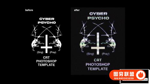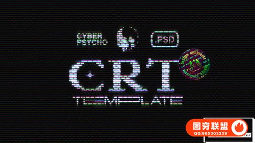 [PSD模板]复古老式CRT屏幕色彩显示故障游戏文字图像错位失真特效PSD模板 CyberPsycho CRT Photoshop Template