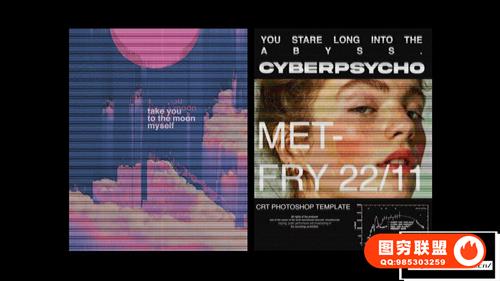 图穷联 » [PSD模板]复古老式CRT屏幕色彩显示故障游戏文字图像错位失真特效PSD模板 Cy