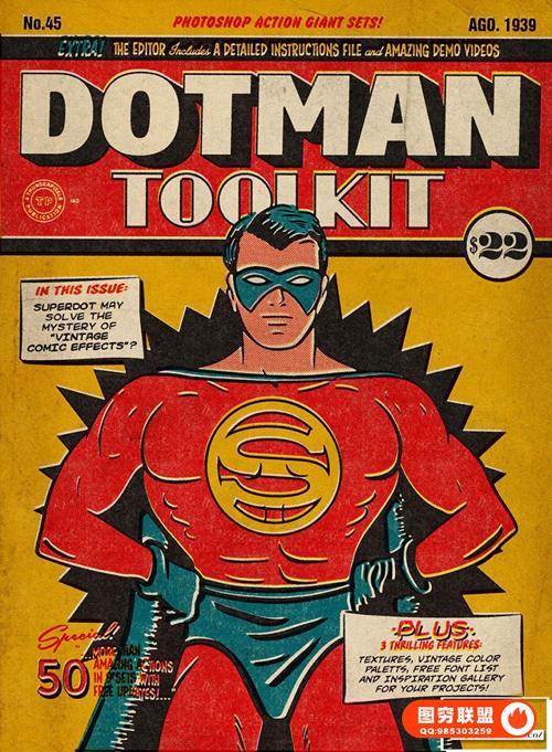 关于产品:DotMan ToolKit Vintage Comic Effects,Adobe Photoshop 的专业复古漫画书效果
