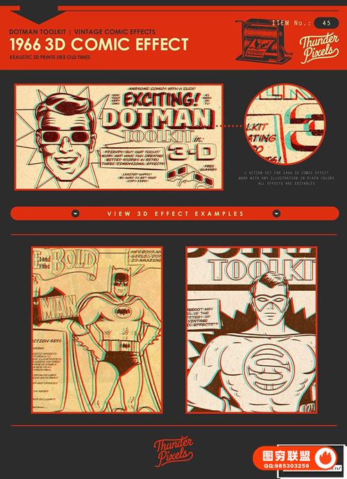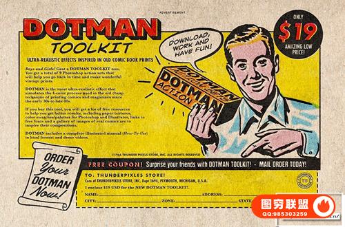 [PS动作]复古漫画半色调波普艺术照片处理特效插画图集设计Photoshop工具包 DotMan ToolKit Vintage Comic Effects