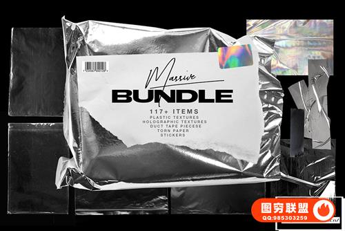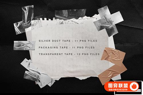 [图片素材]100+透明塑料保鲜膜包装胶带全息标签贴纸撕裂纸张艺术纹理图片素材 Plastic Wrap & Torn Paper Bundle