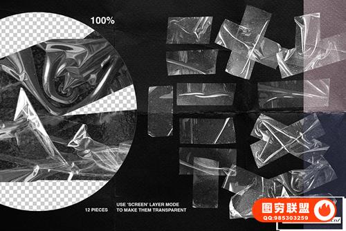 图穷联 » [图片素材]100+透明塑料保鲜膜包装胶带全息标签贴纸撕裂纸张艺术纹理图片素材 Pl