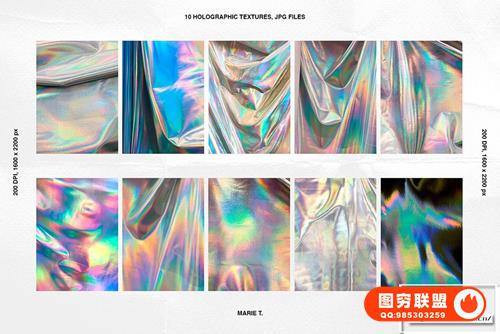 10 个全息纹理 JPG,200 DPI,1600 x 2200 像素