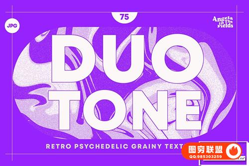 [图片素材]75张70年代复古迷幻酸性扭曲流体渐变双色调抽象艺术噪点纹理背景素材 Duotone Psychedelic Textures