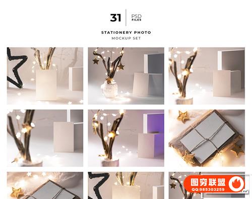 图穷联 » [PS样机]195+背景墙壁纸连衣裙圣诞卡片礼盒婚礼邀请函咖啡杯等PS样机合集漏光阴