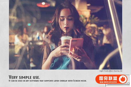 适合业余爱好者和专业人士。在彩色和黑白照片上表现出色。为了您的方便,在屏幕模式中添加了用于选择和覆盖叠加层的操作。这适用于 Photoshop 和 Photoshop Elements。Light Trails Overlays 可以在任何图形编辑器中使用,它支持屏幕模式下的图层叠加。