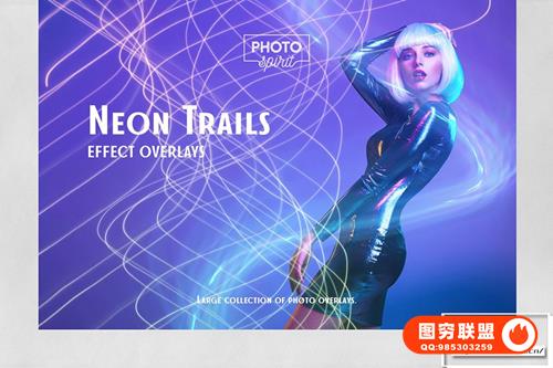 [图片素材]55张霓虹灯轨迹光线夜景人像照片叠加合成素材 Neon Trails Overlays Effect