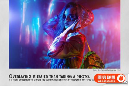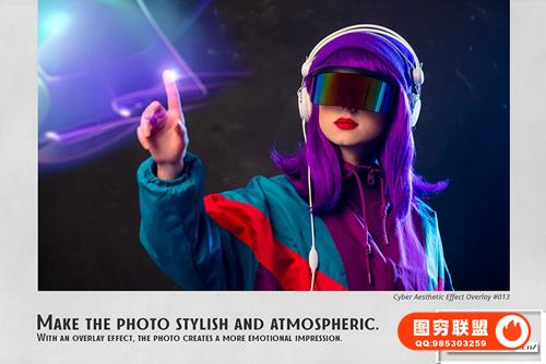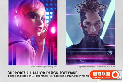 适合业余爱好者和专业人士。在彩色和黑白照片上效果极佳。为了您的方便,在屏幕模式下添加了用于选择和覆盖叠加层的操作。这将适用于 Photoshop 和 Photoshop Elements。Cyber Aesthetic Overlays 可用于任何支持屏幕模式下图层叠加的图形编辑器。