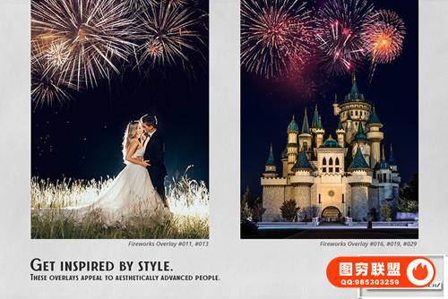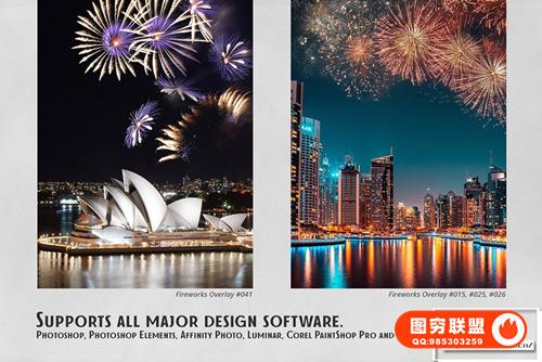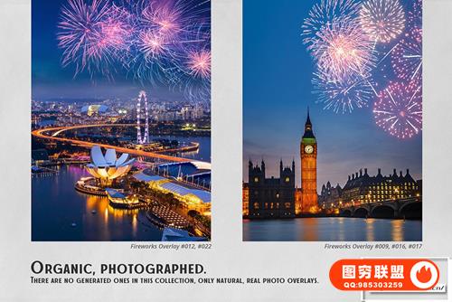 [图片素材]41张绚丽烟花庆典晚会焰火爆炸照片叠加合成素材 Fireworks Effect Overlays