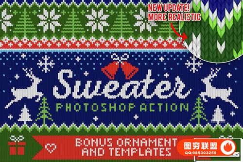 图穷联 » [PS动作]圣诞主题毛衣圣诞帽针织纹理生成特效PS动作 Ugly Christmas