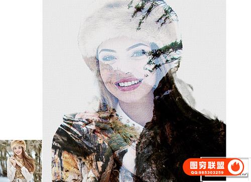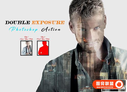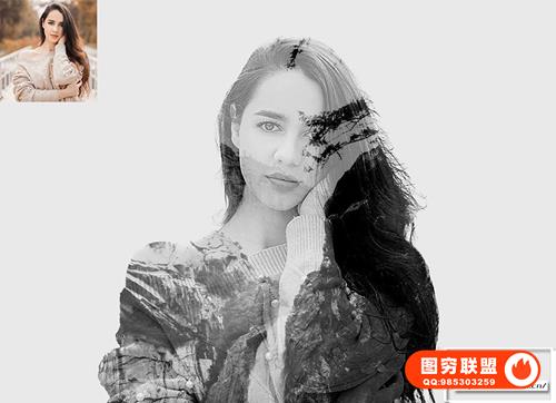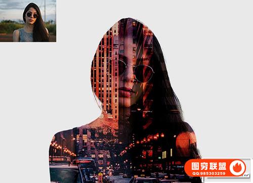 图穷联 » [PS动作]双重曝光人像背景融合特效PS动作 Double Exposure Pho