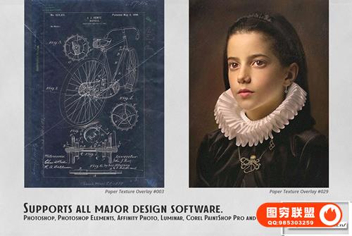 适合业余爱好者和专业人士。在彩色和黑白照片上效果极佳。为了您的方便,在屏幕模式下添加了用于选择和覆盖叠加层的操作。这将适用于 Photoshop 和 Photoshop Elements。Paper Texture Effect Overlays 可用于任何支持屏幕/滤色模式下图层叠加的图形编辑器。
