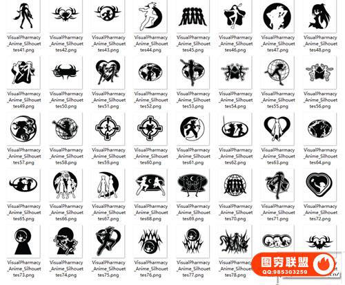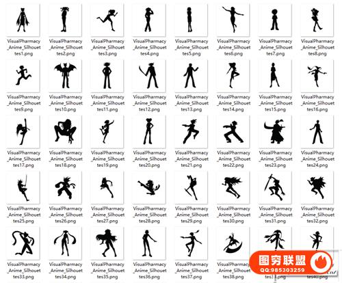 图穷联 » [矢量素材]80多个童年复古动漫元素剪影PNG矢量素材 80+ Anime Silh
