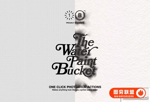 [PS动作]水渍水迹渗透污染动画LOGO文本图形处理特效PS动作 The Water Paint Bucket – One Click