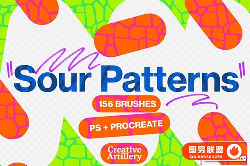 [PS笔刷]156支时尚简约酸性方格半色调图案纹理艺术插画绘画PS/Procreate笔刷 Sour Patterns Brush