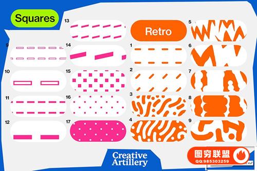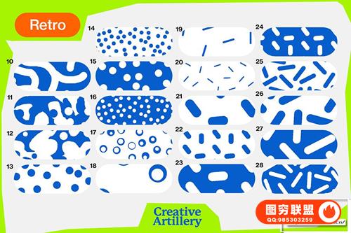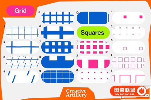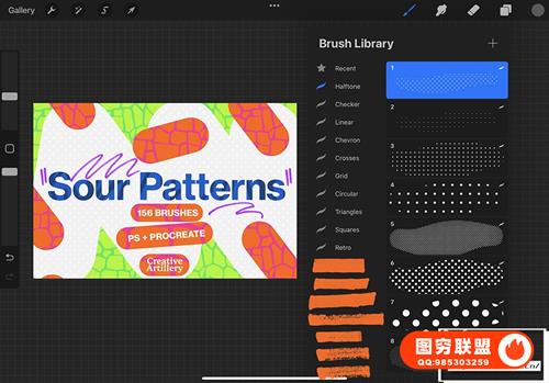 图穷联 » [PS笔刷]156支时尚简约酸性方格半色调图案纹理艺术插画绘画PS/Procreat
