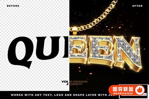 图穷联 » [PSD模板]奢华富贵闪亮钻石大金链子立体文字图形特效PSD模板 Bling Bli