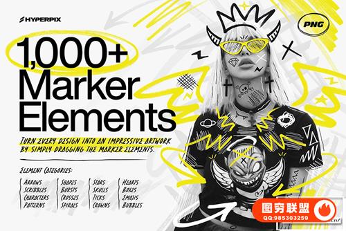 [PNG素材]1000+个性时尚手绘涂鸦手写标记PNG图形元素设计素材 Hyper Marker – 1000+ Marker Elements