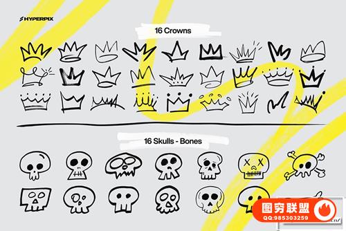 图穷联 » [PNG素材]1000+个性时尚手绘涂鸦手写标记PNG图形元素设计素材 Hyper