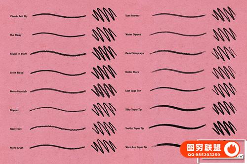 图穷联 » [PS笔刷]逼真水墨钢笔记号笔笔触美术线条压力感应Photoshop绘画笔刷 Mon