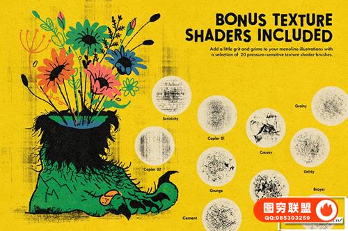 包括额外的纹理着色器画笔,用于为您的工作添加一些额外的东西。