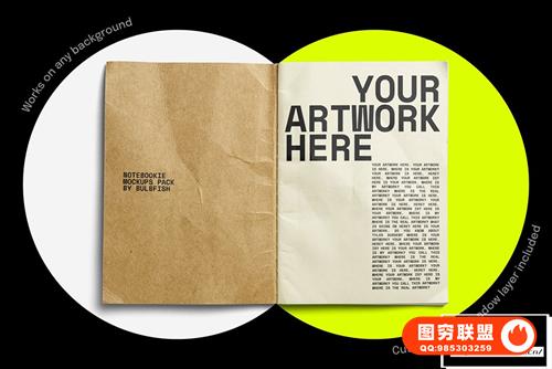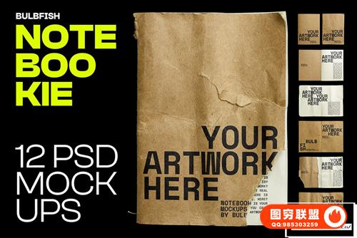 图穷联 » [PS样机]12种新旧破损笔记本记事本开合状态展示PS模型样机 Notebookie