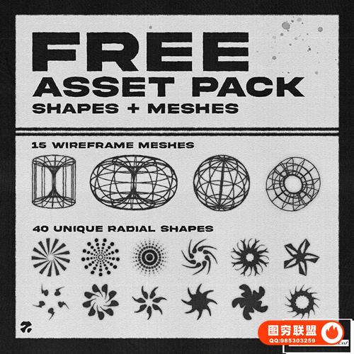 [图片素材]50款抽象艺术几何图形酸性网格线框图标设计PS图片素材 Radial Shapes + 3D Mesh Assets