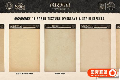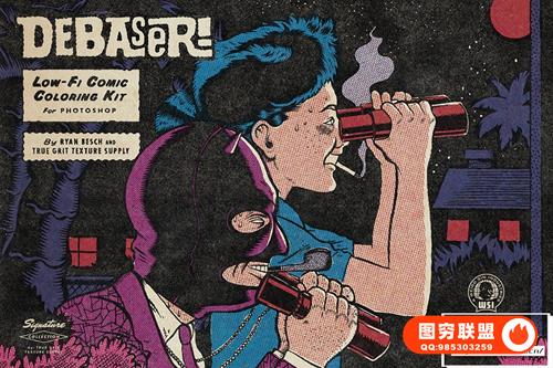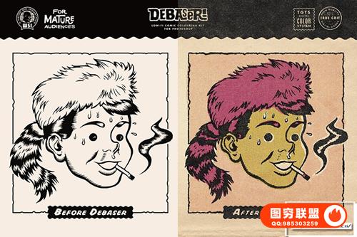 图穷联 » [PS笔刷]复古插画漫画水墨印刷半色调纹理着色PS笔刷色卡工具包 Debaser f