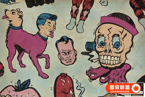 使用来自复古漫画、图画小说、低俗小说书籍和蜉蝣的档案纹理和纸样构建。