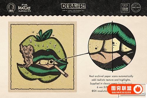 [PS笔刷]复古插画漫画水墨印刷半色调纹理着色PS笔刷色卡工具包 Debaser for Photoshop