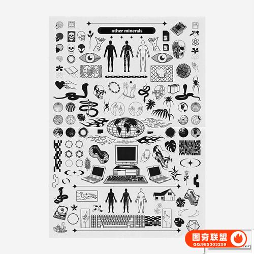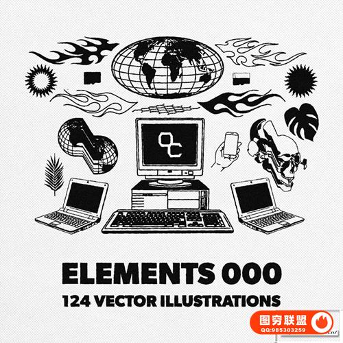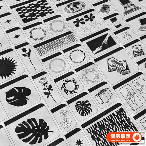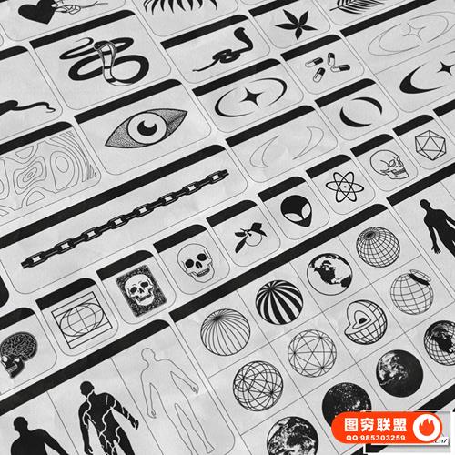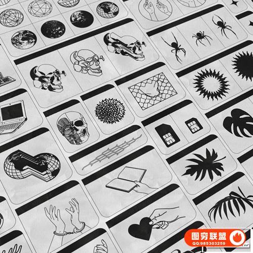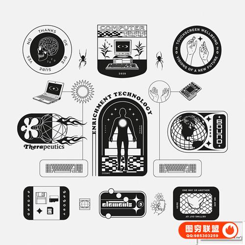 图穷联 » [矢量素材]124款潮流贴纸图标LOGO抽象艺术装饰元素插件设计矢量素材 Studi