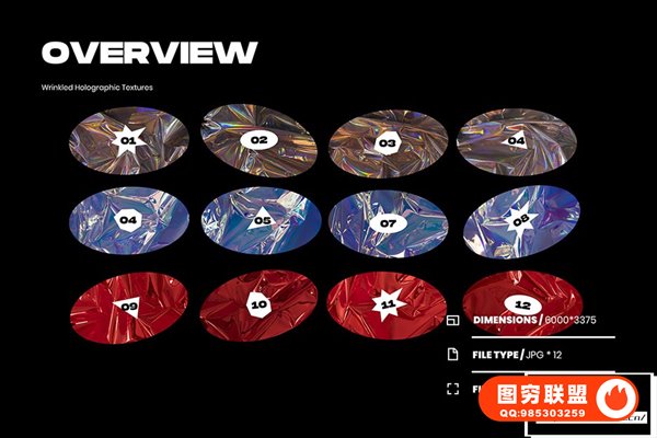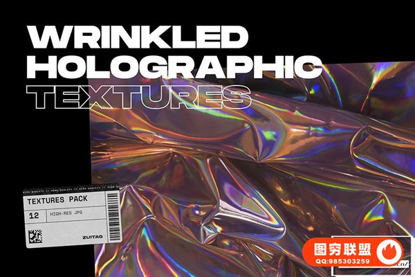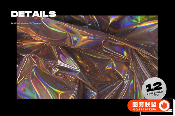 图穷联 » [图片素材]12款潮流褶皱全息镭射渐变铝箔塑料质感背景纹理素材 Wrinkled H