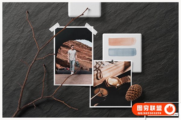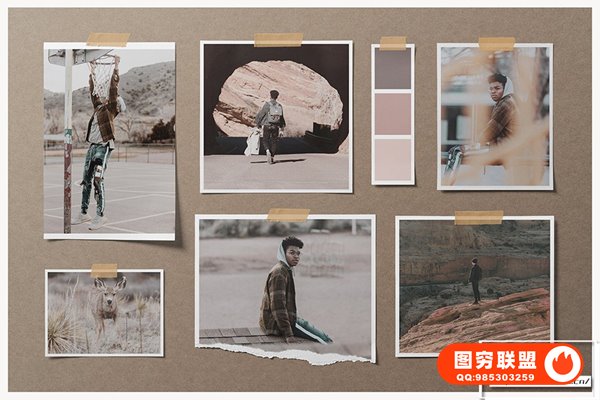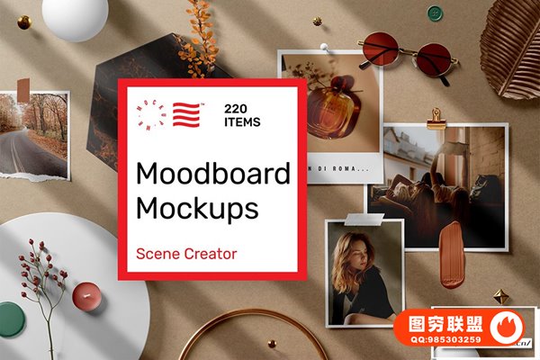 图穷联 » [PS样机]220个照片墙相册卡片情绪板设计场景展示元素PS样机 Moodboard