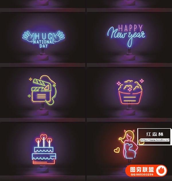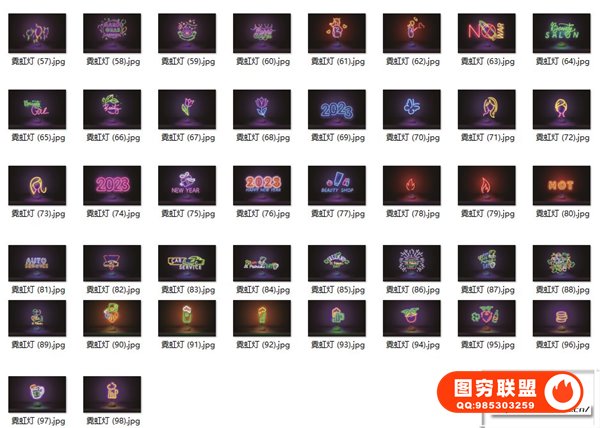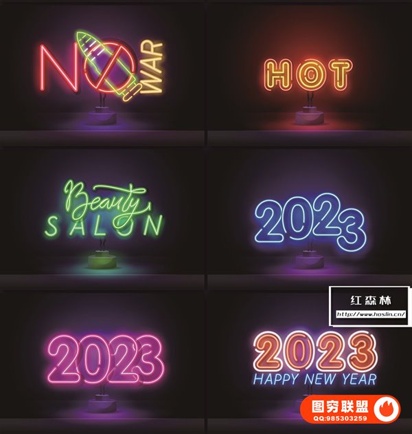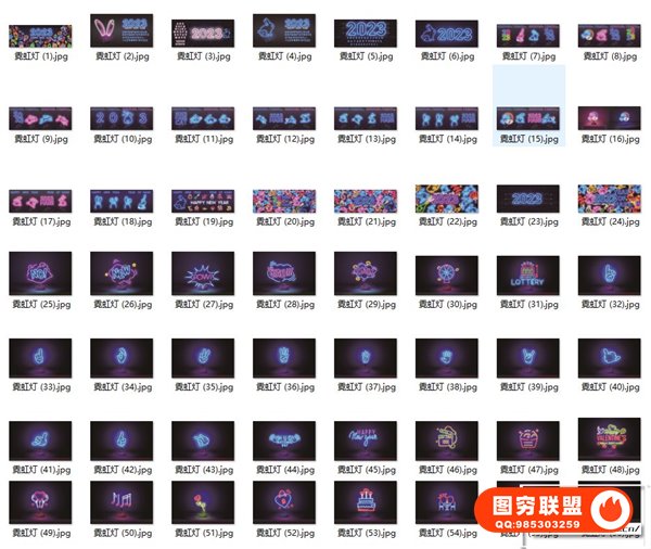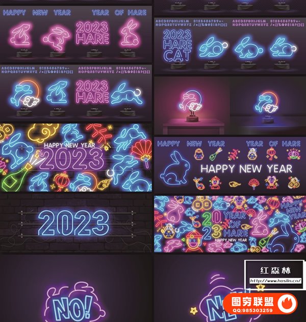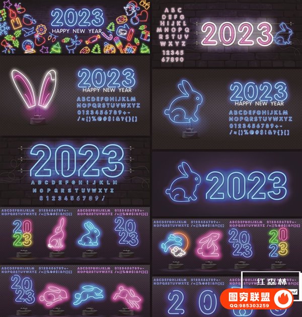 图穷联 » [矢量素材]98款2023兔年新年霓虹文字标题图形EPS矢量素材