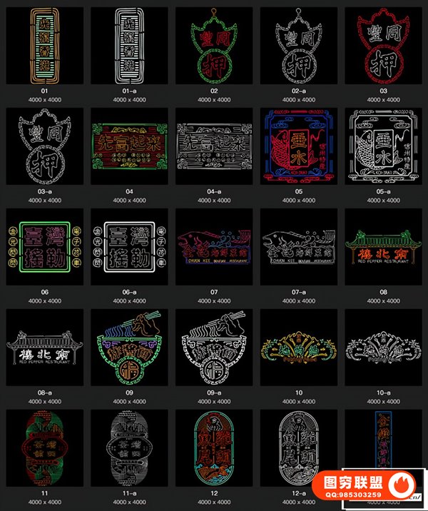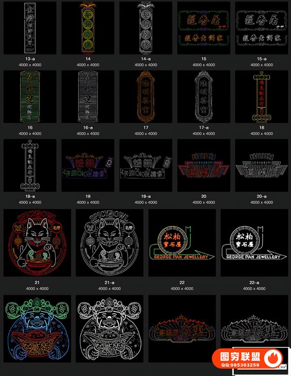 图穷联 » [矢量素材]24款复古港风夜景霓虹店招电影海报插画设计EPS矢量素材