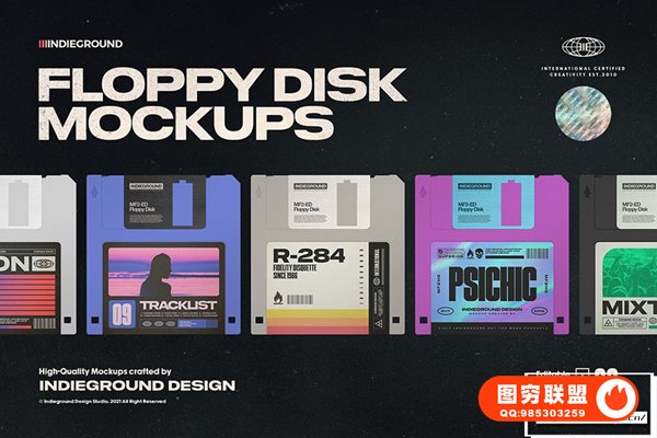 图穷联 » [PS样机]8款复古怀旧软盘磁盘电子设备贴图模型PS样机 Indieground -